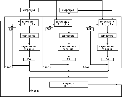 архитектура генетического поиска с миграцией и искусственной селекцией