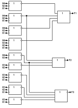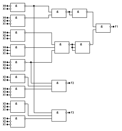 виконана сумісна мінімізація функцій. Були побудовані комбінаційні схеми, що
