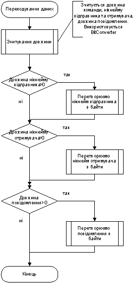 частина - перетворення байтів команди, нікнеймів та повідомлення у текстовий