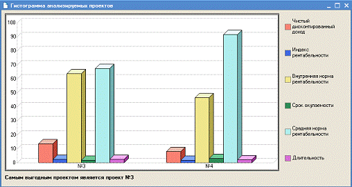 осуществляет сравнение инвестиционных проектов и построение диаграммы.