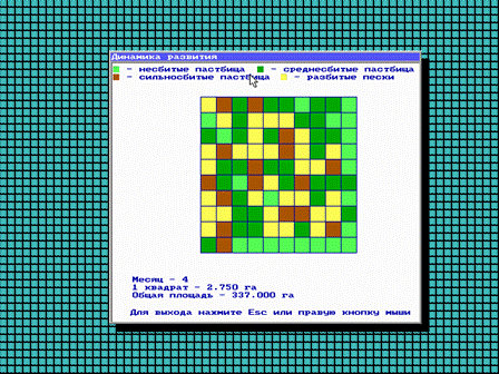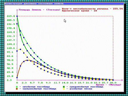Моделируется гипотетическая экосистема с эффектом опустынивания земель.