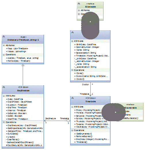 на два подкомпонента - класс DayShedule, инкапсулирующий расписание приема на один день, и класс Timetable, агрегирующий
