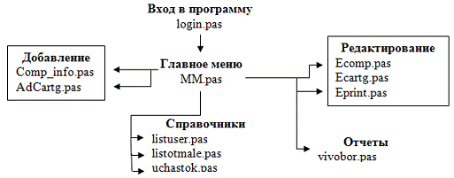 модулем главного меню (MM.pas) в виде блок-схемы на рисунке 1.6.1 (стр. 16).