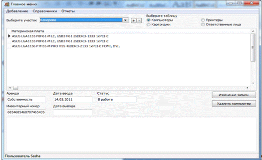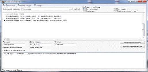 - модуль «Изминение компьютера».pas - модуль «Добавление картриджа».pas -