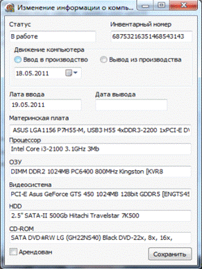Рис. 7 - Изменение информации о компьютере