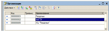 При выборе пункта «Организации» появляется справочник «Организации»