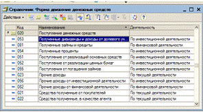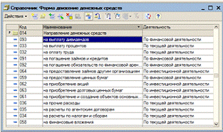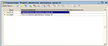 При выборе пункта «Форма движения денежных средств» появляется справочник