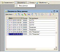 При выборе подпункта «Ввод данных» в меню «Документы» открывается форма,