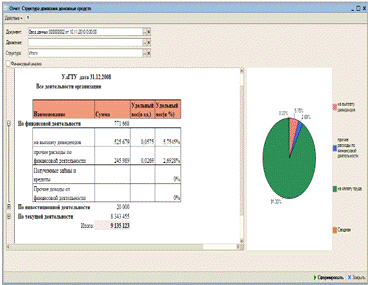кнопки «Сформировать», выводит результаты анализа в виде отчета.
