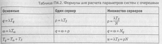 Таблица 2- Параметры системы с очередями