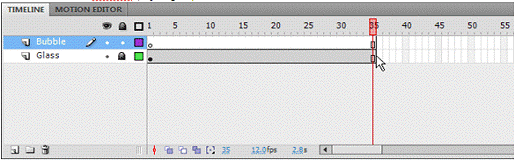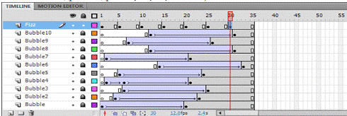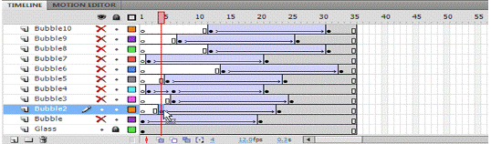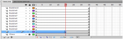 На шкале времени Timeline выберите слой Bubble10 ниже