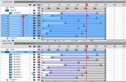 На шкале времени Timeline перетащите выбранные слои в слой Bubble10