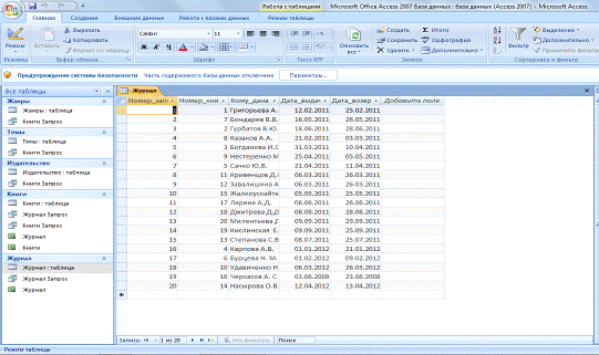 Рис.1. Таблица «Журнал»