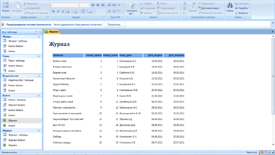 Рис. 3 Основная таблица «Книги»