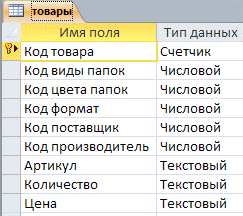 Для возможности хранения данных используется 6 таблиц: «Товары», «Вмды