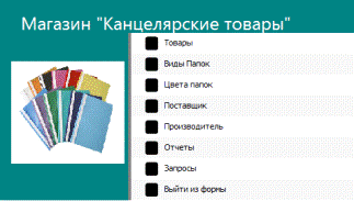 При запуске базы данных Магазин «Канцелярские товары» в среде MS Access автоматически загружается главное окно приложения.
