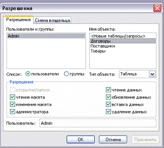 объектам базы данных в рабочей группе MS Access 2000. Администратору БД