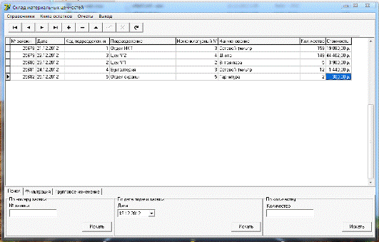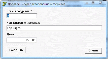 материальных ценностей». После запуска программы открывается основная форма.