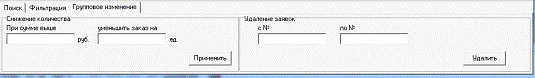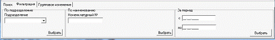 данными имеется три вкладки: поиск, фильтрация и групповое изменение. На