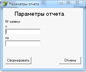 параметров программа запрашивает диапазон номеров заявок. В данном контрольном