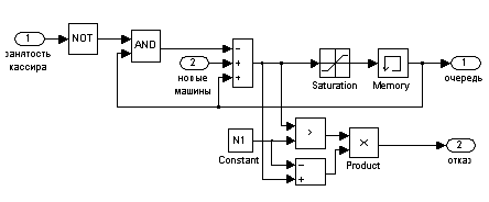 вход2 «новые машины») суммируется с текущим количеством клиентов в очереди.