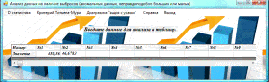 Программа разработана для анализа одномерных данных, с целью выявления в