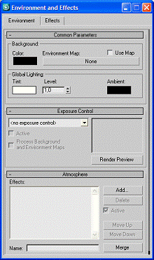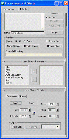 Параметры Линзовых Эффектов) в диалоговом окне Environment and Effects.