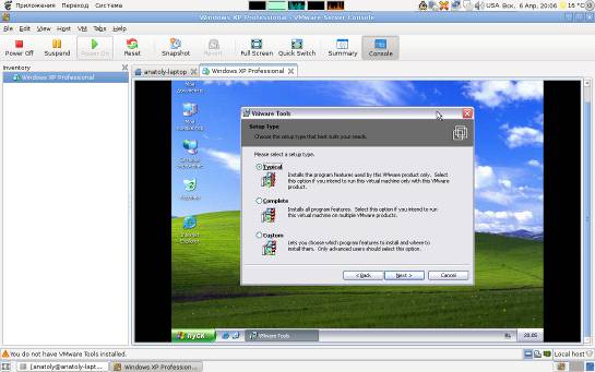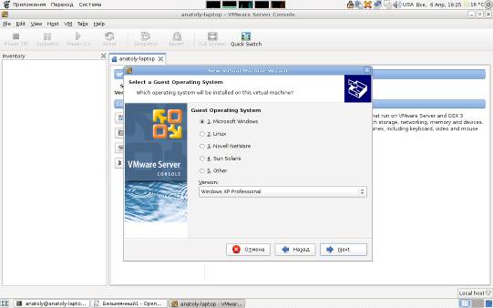 проекта был выбран дистрибутив VMware Server как наиболее функциональный из бесплатных продуктов VMware Inc.