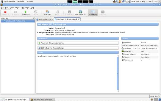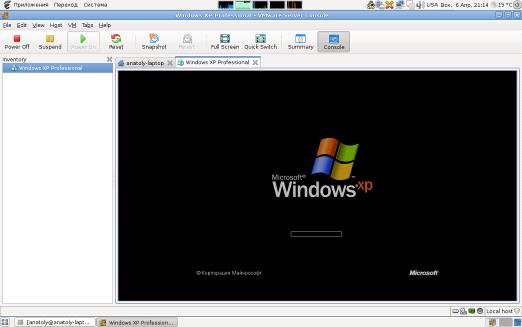 виртуальная машина сконфигурированная под ОС MS Windows XP Professional.