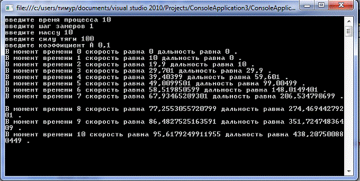 [x + 1];. Write («введите массу»);= Console. ReadLine();= double. Parse(s);. Write («введите силу тяги»);= Console.
