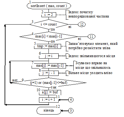 Малюнок 2.2 - Алгоритм сортування по неспаданню методом вставки