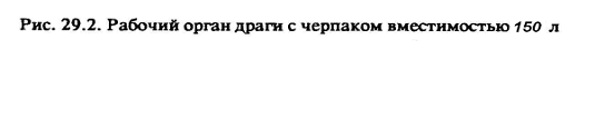 драги с черпаками вместимостью 50-600 л и предельной глубиной черпания до 50 м.