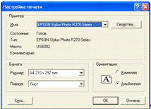 "Орієнтація" книжкова або альбомна. Вибравши параметри принтера,