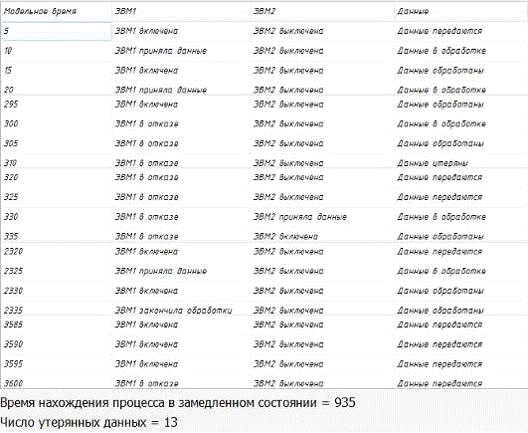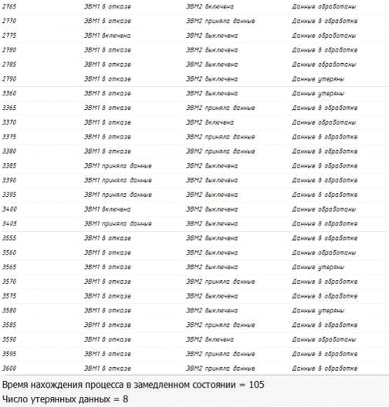 в замедленном состоянии, число пропущенных из-за отказа данных.