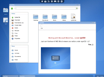сообщений), браузер, калькулятор и др. На рабочем столе eyeOS присутствуют ярлыки,