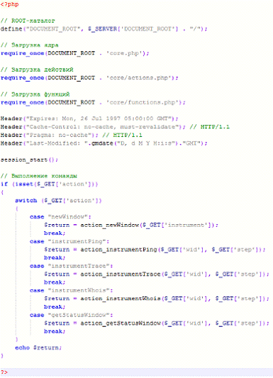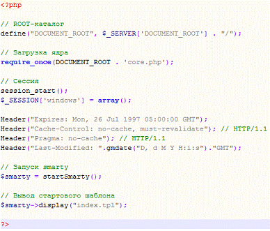 PHP-код начальной загрузки интернет-сервиса (index.php)