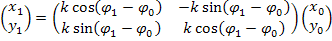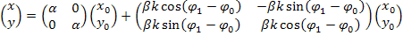 - угол поворота исходного множества