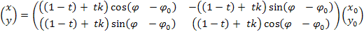 поворота поворачиваем переходное множество на угол