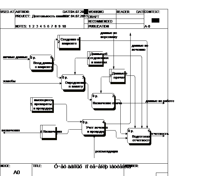 бизнес-процесса: ведение базы данных пациентов, учет назначенного лечения,