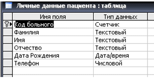 Рисунок 7. Таблица «Личные данные о пациенте»