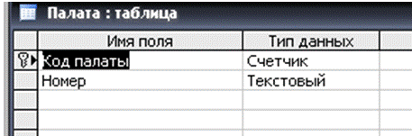 Таблица «Палата» содержит сведения о палатах диагностического центра.