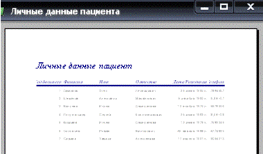 - подготовка отчетов о принятых пациентах, о пациентах с