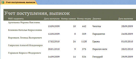 создание базы данных, описание процесса создания таблиц, форм, отчетов,