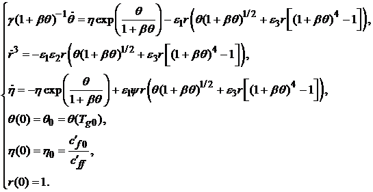 первое уравнение системы, описывает температуру горения.