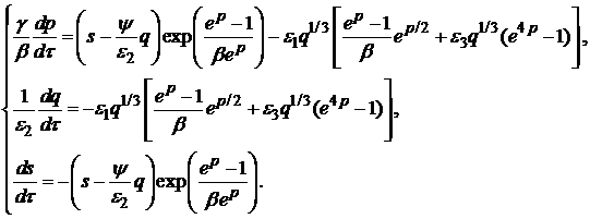 > u1:=D(p)(tau)=((s(tau)-psi*q(tau)/epsilon2)*exp((exp(p(tau))-1)