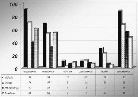 примерно одинаковых видеокамер превалирующее значение на точность распознавания