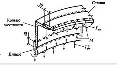 Опорное кольцо жёсткости резервуара воспринимает нагрузку в виде собственного