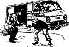 terrify, lie, hand over, make a getaway, run, start the engine