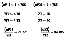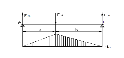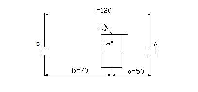 Fax=Ft3*b/l+b=3405*70/71=2270Н.бx=Ft3*a/l+b=3405*50/71=1135Н.A=(FAX2+FAY2)1/2=2430H.Б=(FБX2+FБY2)1/2=1210H.