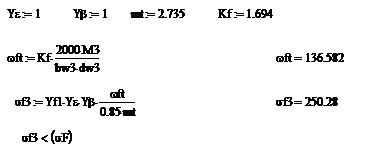 Fr3=Ft3*tga=3405*0.364=1240H.t3=2*T3/dw3=3405H.бу=Fr3*(c+b)+Fr2*c/l=1240*125+468*55/195=927H.